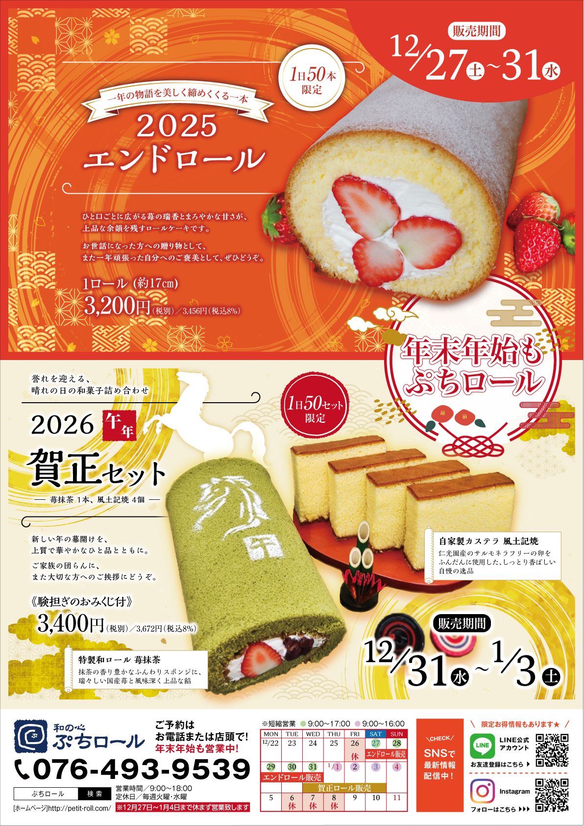 今年も休まず営業!ぷちロールの年末年始のご案内