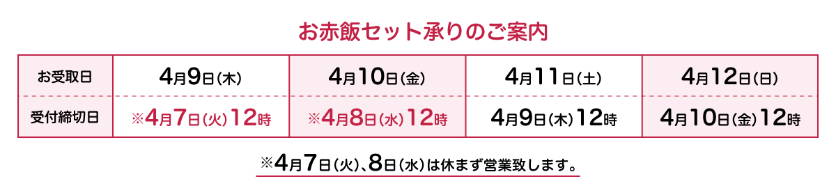 4/9(木)〜4/12(日)のご注文はネット予約でも承ります。