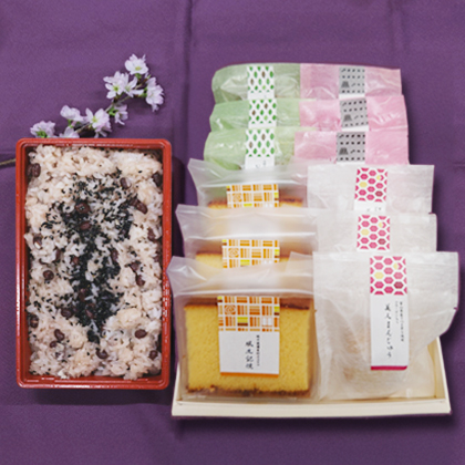 〈焼き菓子詰め合わせの内容〉 ・カステラ「風土記焼」✕3個(賞味期限:7日間) ・美人まんじゅう✕3個(賞味期限:7日間) ・丹波のくろ豆✕3個(賞味期限:14日間) ・お抹茶ケーキ✕3個(賞味期限:14日間)
