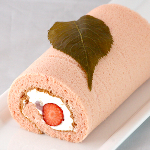 桜餡と国産苺を巻き、桜葉をのせた春らしいロールです。
